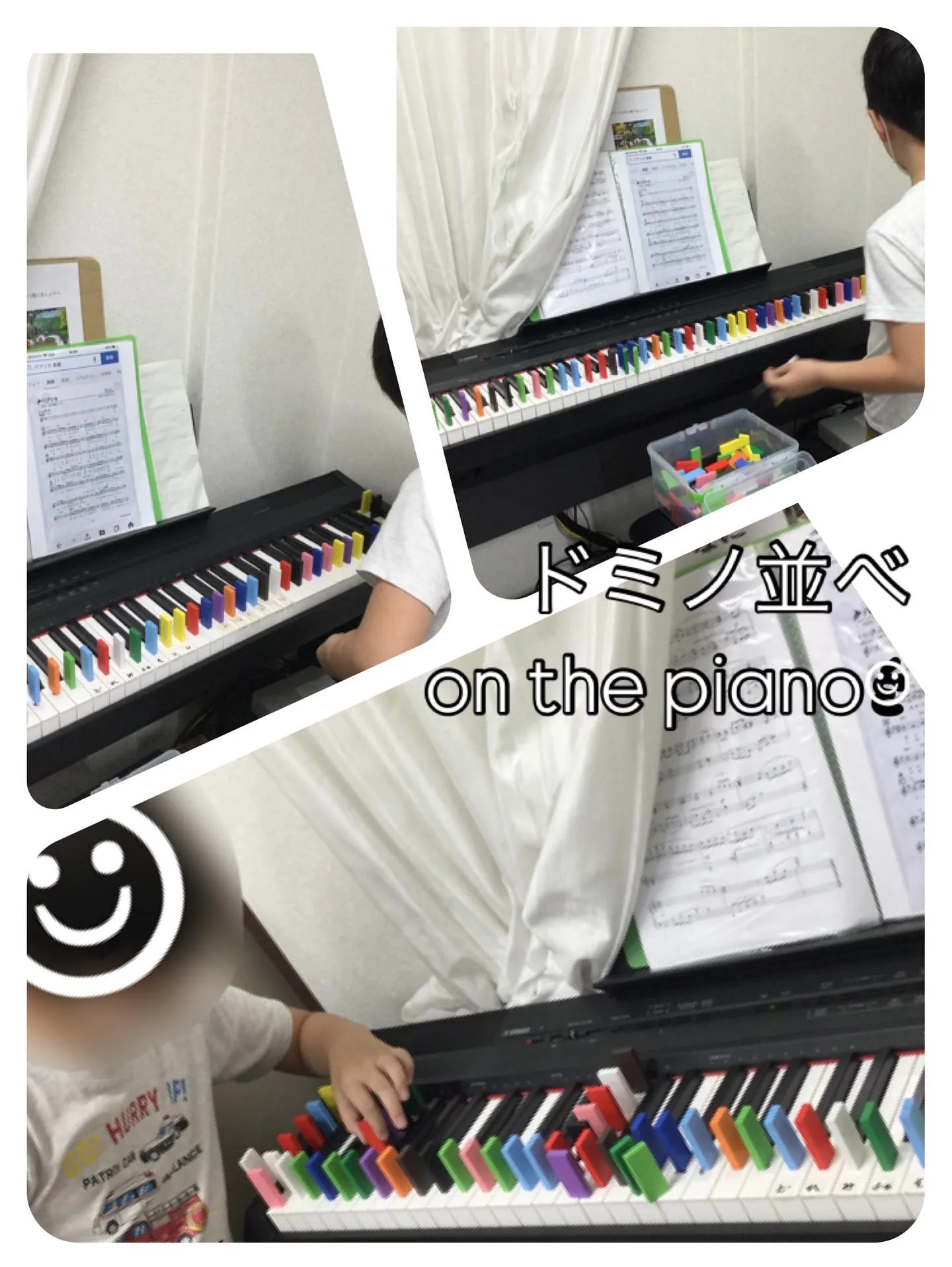 ドミノ並べ、ピアノの上?!☺︎