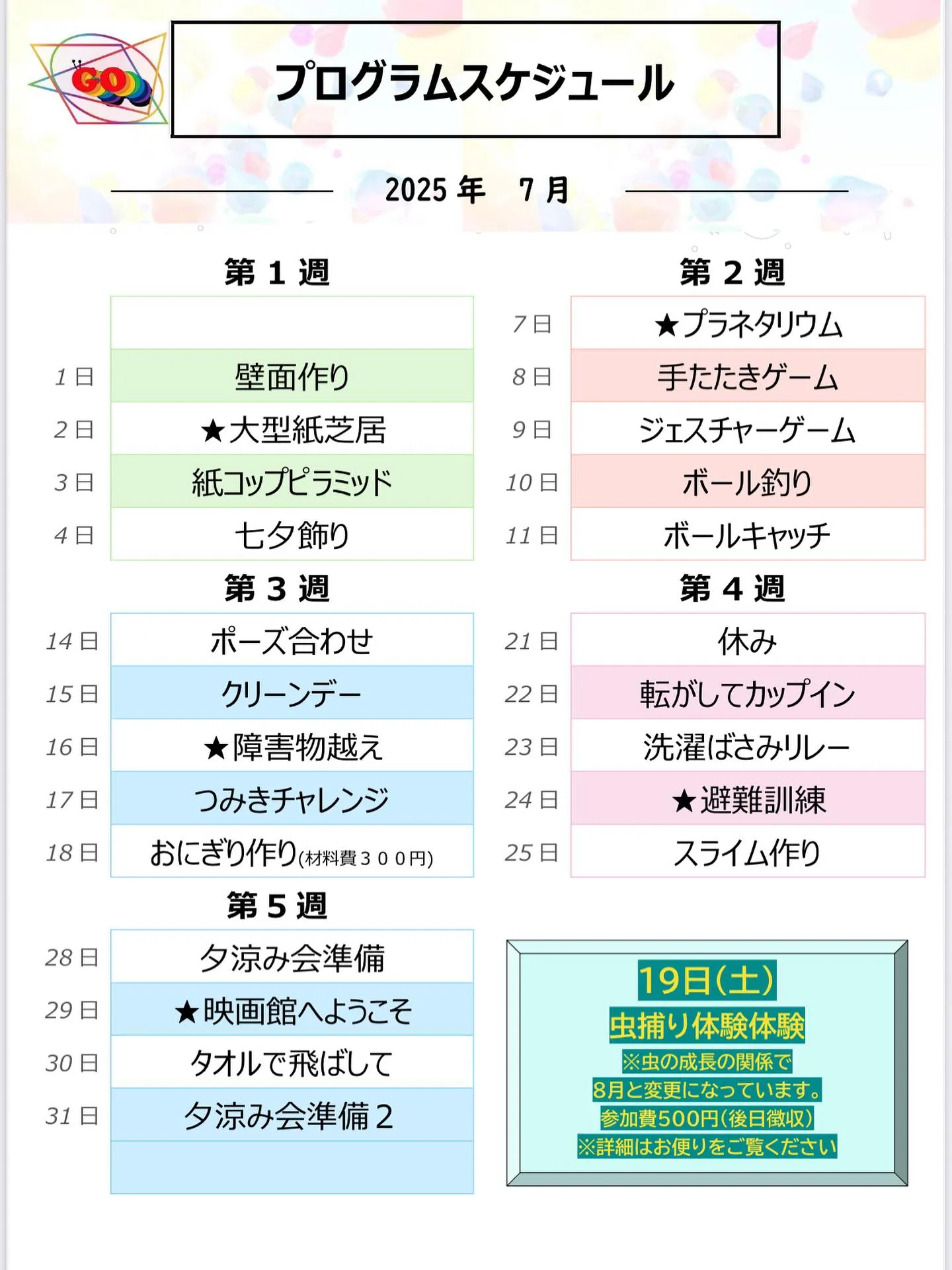 今月のプログラム🎈✏️