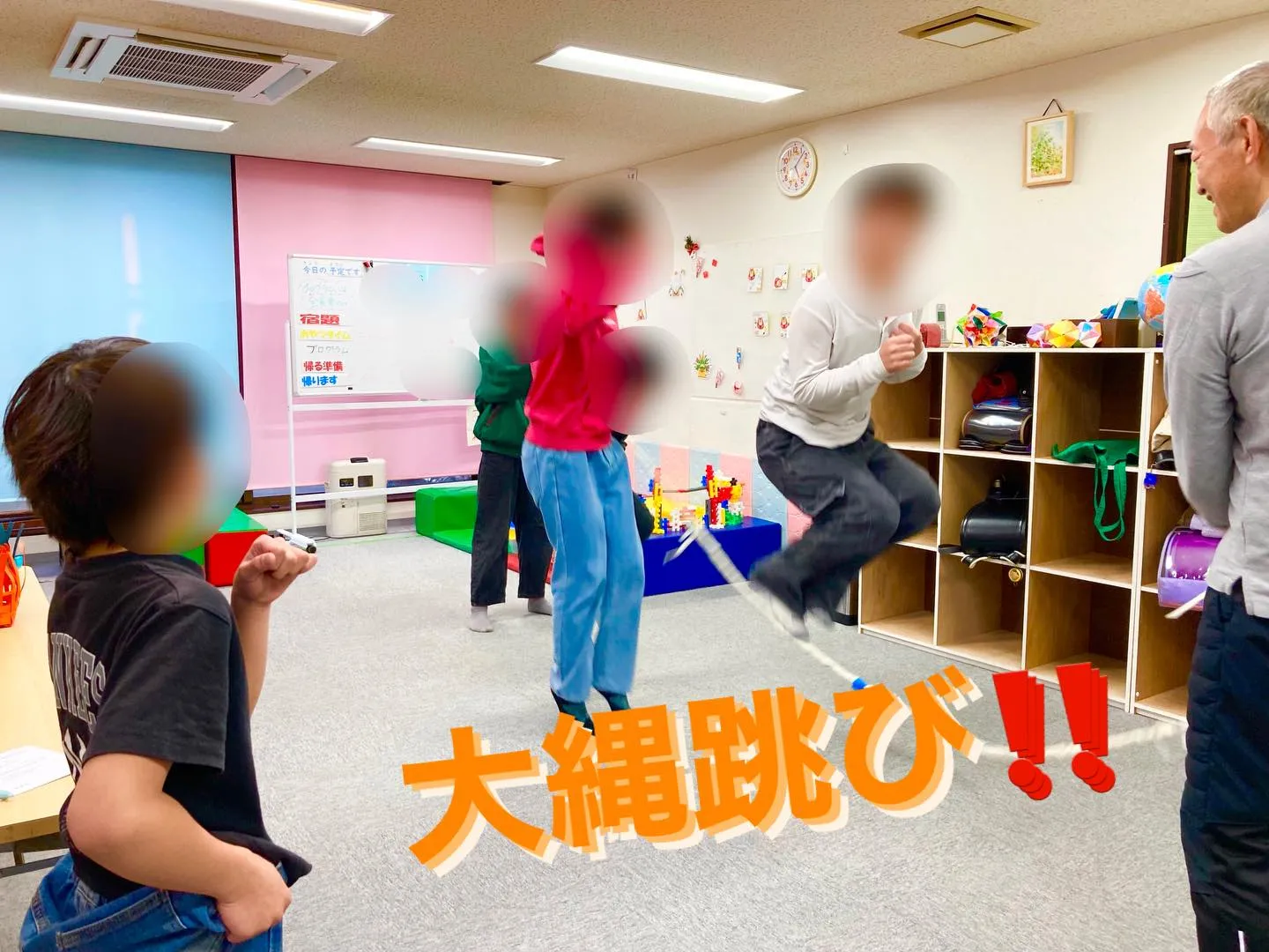 大縄跳び‼️ 大縄跳び‼️この季節、縄跳びに親しむ季節ですね🏃大縄跳びには…⭐︎タイミングを合わせて跳ぶ協調運動⭐︎縄の動きを目で追う視覚認知・空間認知⭐︎足での踏切、着地のバランス感覚・筋力⭐︎縄の音や振動を感じ…