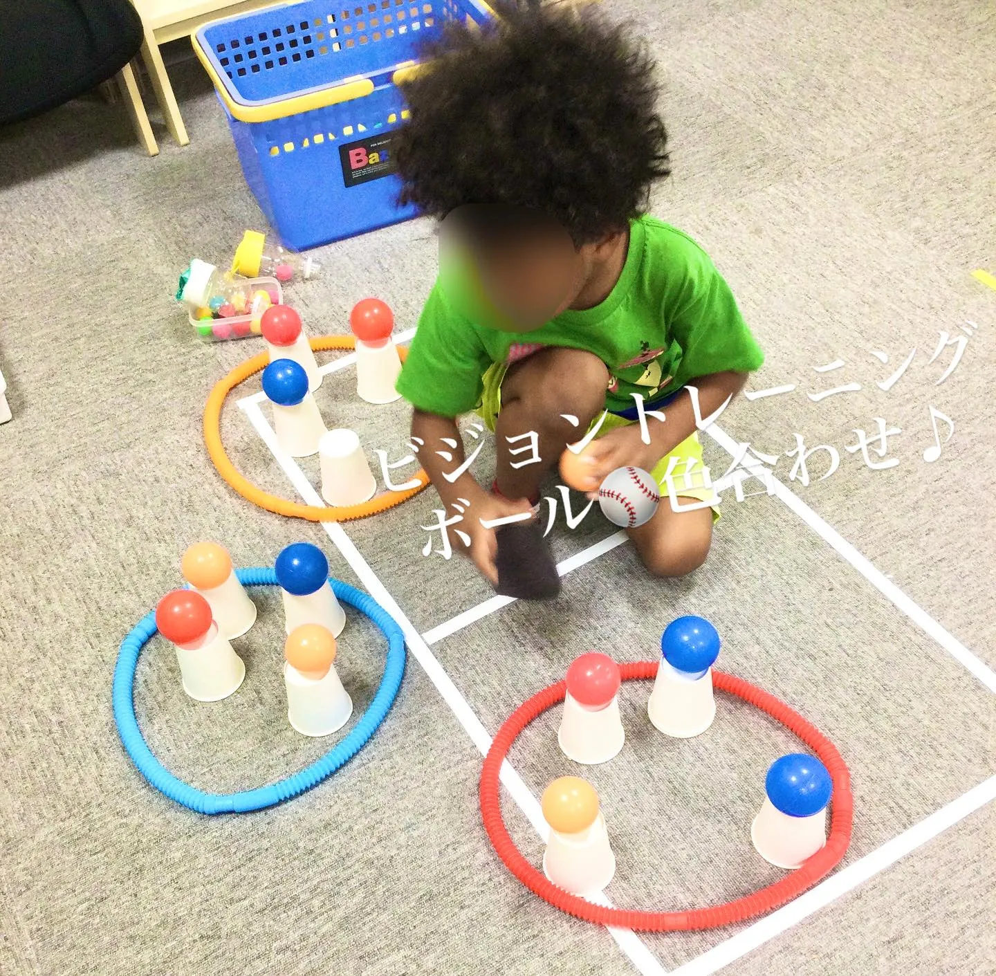 色分けボールゲーム⚾️転がってくるボール色を瞬時に判断し、色ごとのかごへスライドイン‼️🟥色の識別で視覚認知を促す♪🟨手先の操作で微細運動に!🟦転がってくるボールを見逃さないように集中します♪ボール…