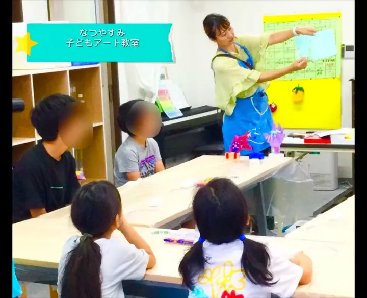 夏休み子どもアート教室🎨🖌 夏休み子どもアート教室🎨🖌夏休みイベント、子どもアート教室が開催されました😆プロカメラマンの方がアートイベント講師として来てくださいました✨子どもたちの手型を使ったアートで、今の手の大きさで製…